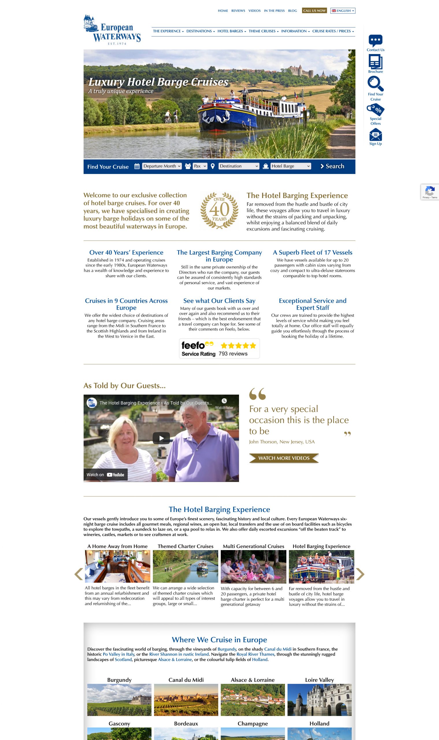 - Firstly, the company’s core USPs and establishing their credentials – luxury barges, 40 years of experience.